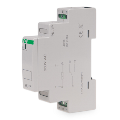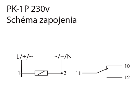 Elektromagnetické relé PK-1P/230 je zariadenie ktoré pôsobením elektrického prúdu v jednom obvode zopne alebo preruší prúd v druhom obvode. Slúži na riadenie spínania malých záťaží ako osvetlenie a podobne.