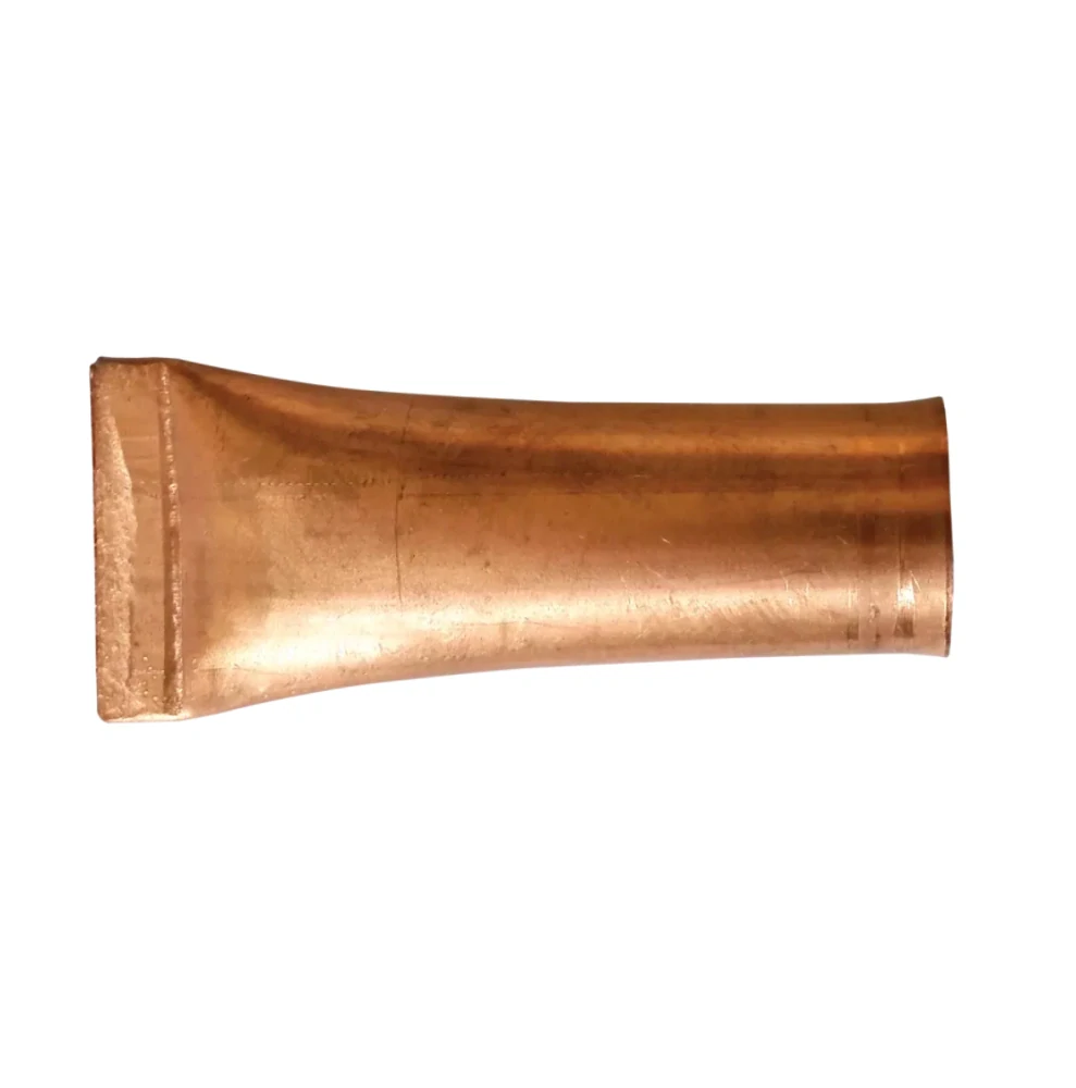 Lisovaná medená koncovka, dlhá 6,5 cm, vnútorný priemer otvoru 1,6 cm