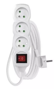 Predlžovací kábel s vypínačom – 3 zásuvky, 2 m, biely