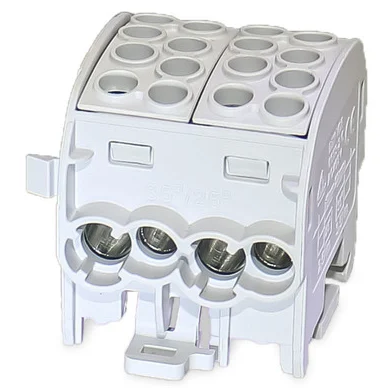 Rozbočovacia svorka, 1-pól., 4x 35mm² + 4x 25mm²   Počet pólov: 1 Počet svoriek: 8 Prierez vstupných vodičov: 4 x (4 - 35 mm²) Prierez výstupných vodičov: 4 x (2,5 - 25 mm²) Povolený materiál vodičov: Cu (meď) Menovité napätie: 100... celý popis